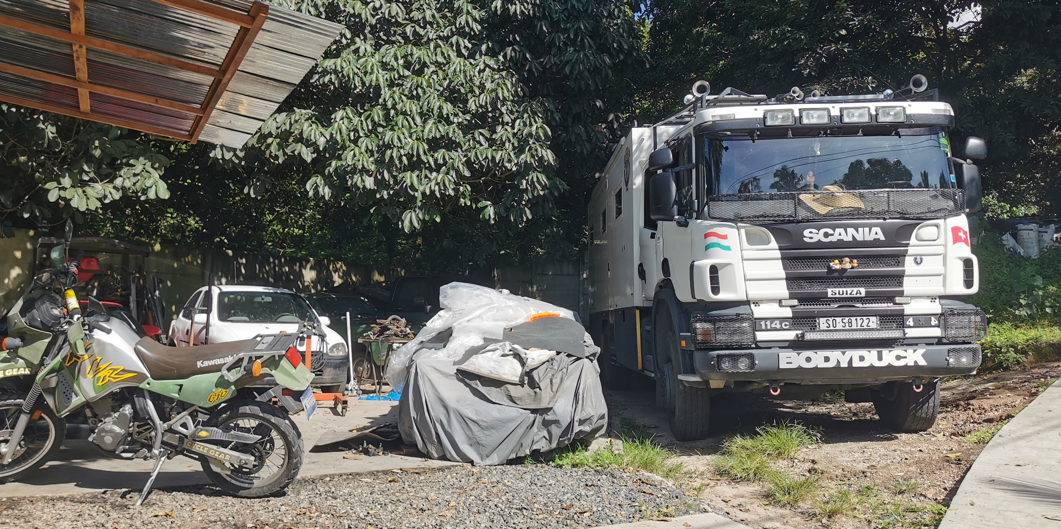 Nach dem wir mit dem Anwalt ein Termin vereibart haben, sind wir los Richtung San Salvador. Per Zufall finden wir auf iOverlander in der Nähe der Hauptstad eien gut gelegenen Stellplatz. Als wir anrufen stellt sich heraus, dass der Besitzer Eddie perfekt deutsch spricht. Da fahren wir direkt zu ihm und quartieren uns für eine Weile ein.