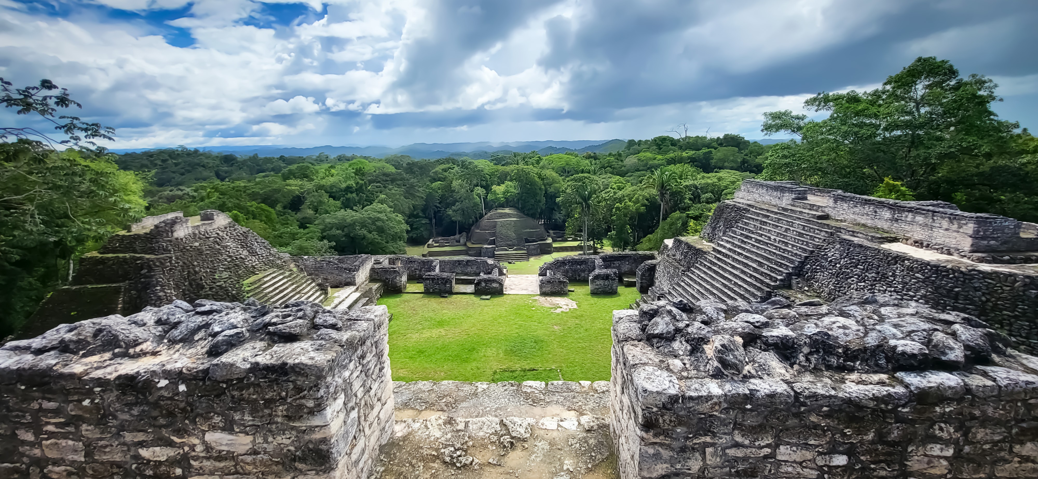 Die letzten Kilometer führen durch dichten Dschungel. Die Vegetation wird üppiger, das Licht gefilterter. Und dann, plötzlich, öffnet sich der Wald – und wir stehen vor Caracol, der grössten Maya-Stätte in Belize.